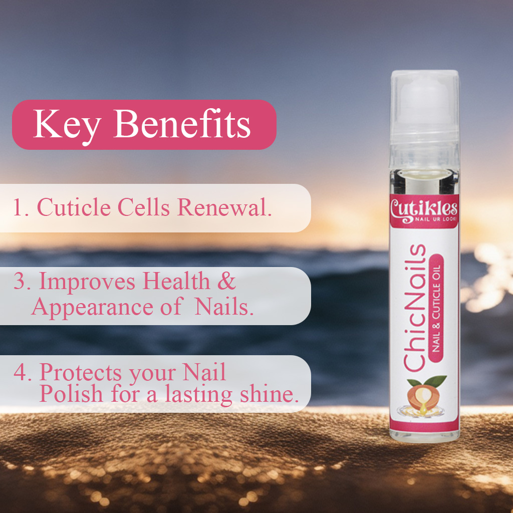 Infused with powerful botanical extracts and essential oils, Cutikles Cuticle Oil Roll-On is designed to deeply hydrate, strengthen, and protect your nails and cuticles. It helps reduce breakage, supports healthy nail growth, and leaves a natural, glossy finish—without any greasy residue. Thanks to its compact, mess-free roll-on design, this cuticle oil is easy to apply anytime, anywhere—making it the perfect addition to your nail care routine, whether you’re at home, at work, or on the go.