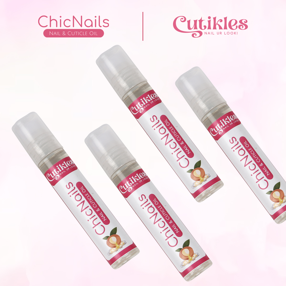 - Apply the Chicnails Cuticle Oil directly on the cuticle area of clean nails using the roll-on applicator.